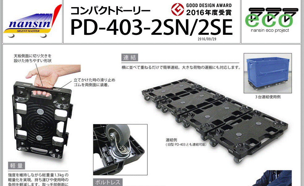 平坦でないところでも、積荷を損ねることなく通行できるなど、キャスターの操作性も優れている。