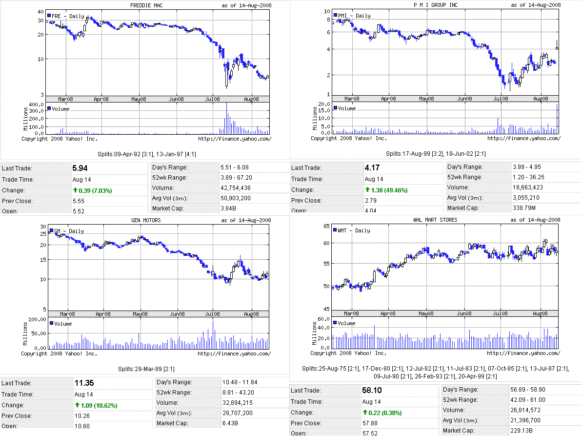 7月CPIは予想よりも上で、先週の新規失業保険申請件数も予想よりも悪く、米株は下落して始まりましたが、その後は切り返して反発して引けました。米証券業金融市場協会(SIFMA)が、ファニーメイとフレディマックの高額ローンを住宅ローン証券の主要市場で限定的に受け入れることにしたことや、原油価格が下落したこと、小売り店の業績が良かったことなどを好感したようです。