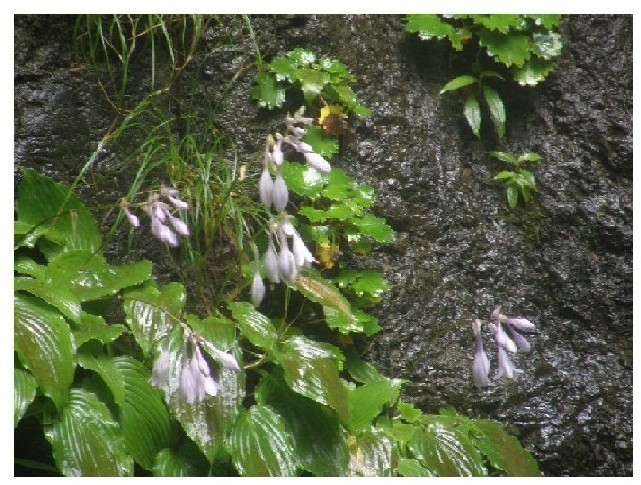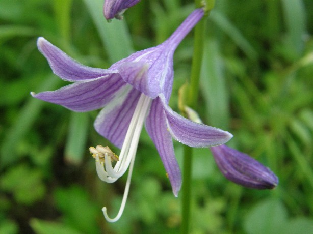 ギボウシの花の全体像は右側の写真です。あまり好きな花じゃなかったのですが、良く見ていると一つの花の満開時はとても綺麗なのを発見し、写してみたのが左側の写真です。
