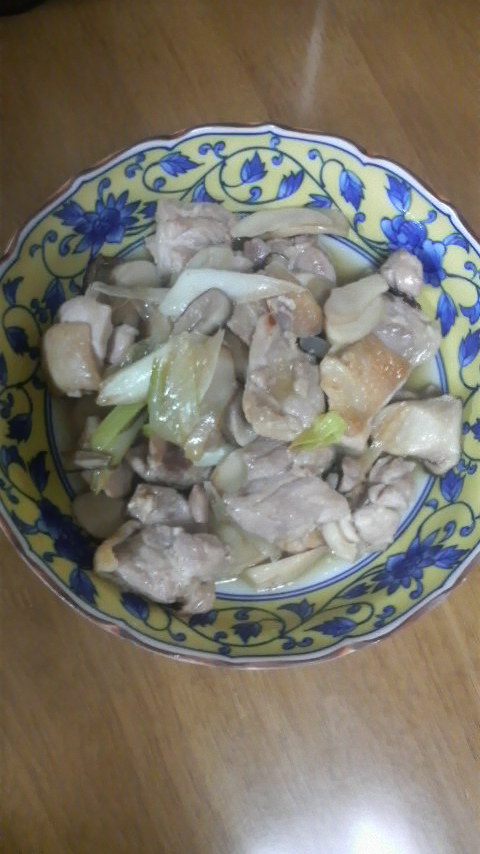 鶏肉とネギ・エリンギのガーリック炒め