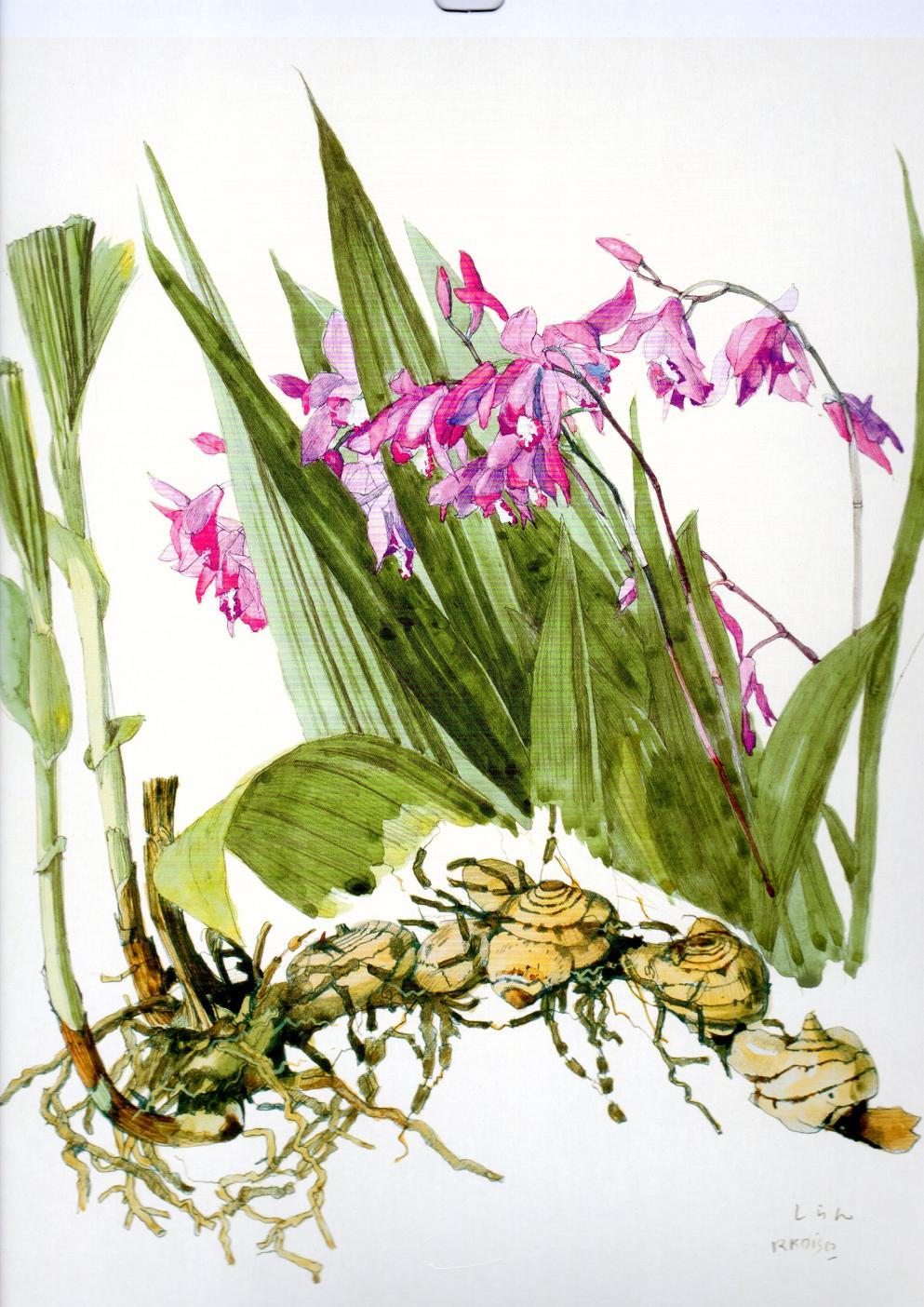 その球茎を蒸乾あるいは熱湯に浸して乾燥したものが生薬の「白及(ビャクキュウ)」で、