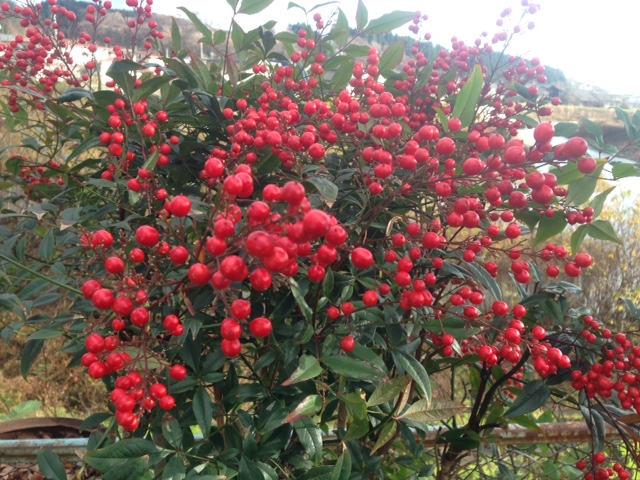 南天も赤い実、今年しゃ春から縁起がいいわ~~い。