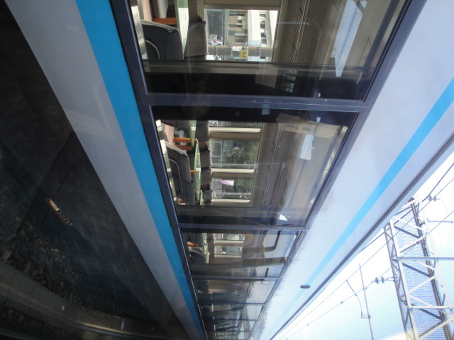★ホーム上で遊ぶなよ!ベビーカーを子供がおもちゃにしています。線路に落ちます。親?は、おしゃべりに夢中