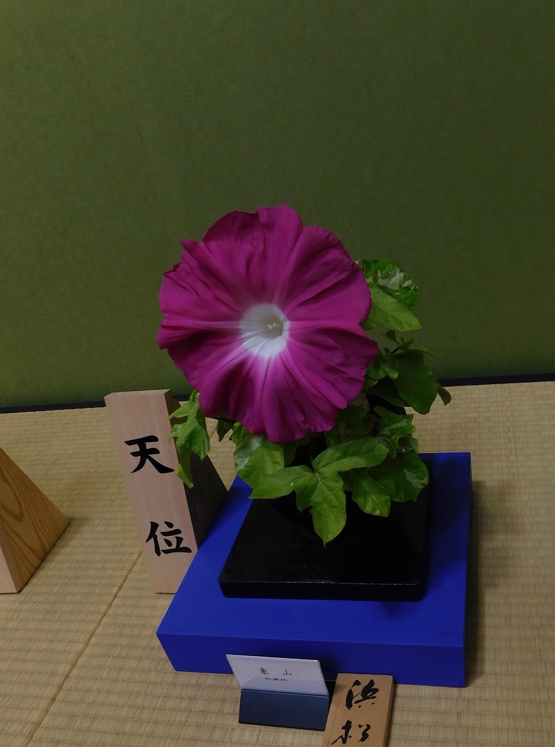 一輪だけ咲かせる、武家の名古屋朝顔が展示されていました。