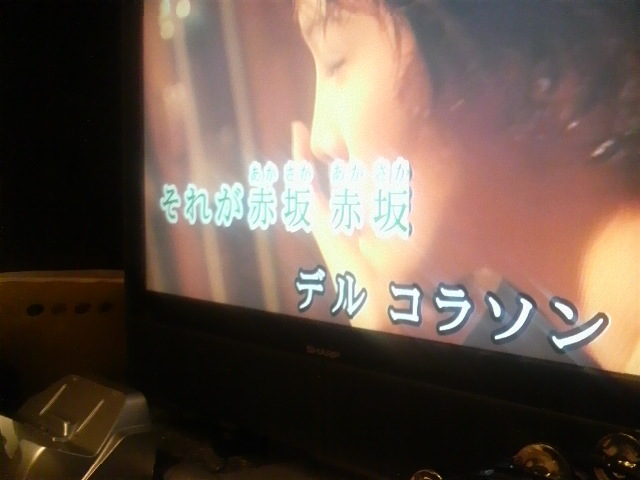 ノリは悪くない旧知の仲なので、結局これがきっかけで場は大いに盛り上がり、皆こぞって70~80年代の懐かしのヒット曲を入力し始めた。気がつけば拙者達の部屋だけがレトロ部屋。写真の映像は『コモエスタ赤坂』のカラオケ映像でござる。