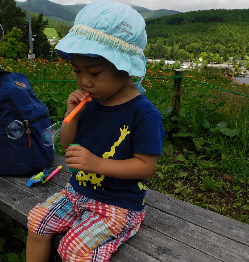 シャボン玉すぐできて、大喜び。