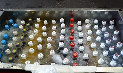 ①氷水でキンキンに冷やしたコカコーラ社製ペットボトル&缶コーヒー売り場