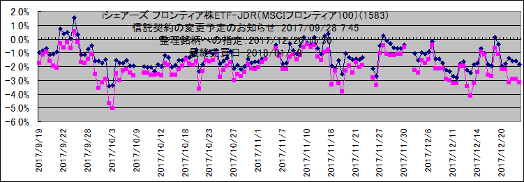 ですが、iNAVと気配値との乖離率をグラフにしました。