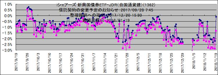ですが、iNAVと気配値との乖離率をグラフにしました。
