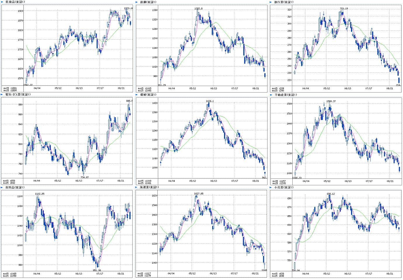 いよいよ本格的な景気後退を市場が織り込みはじめたという感じですね。電気ガス以外底割れです。下手なナンピン怪我の元です。こういうときは、損きりで出直したほうがいいですね。