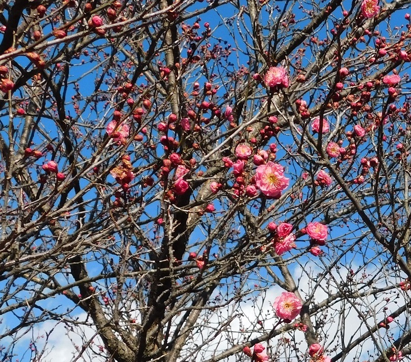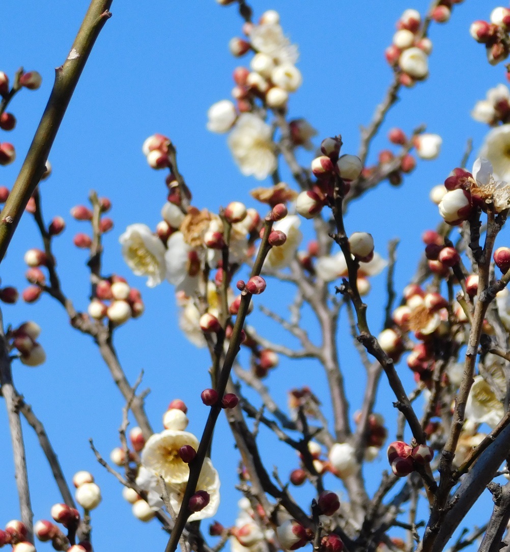 こんばんは❗梅、かわいいですね~青空とのコントラストがとても美しいと思いました。
