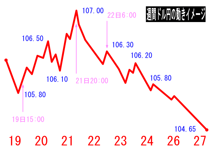 週間と言いつつ、来週頭までのドル円の動きのイメージになります。