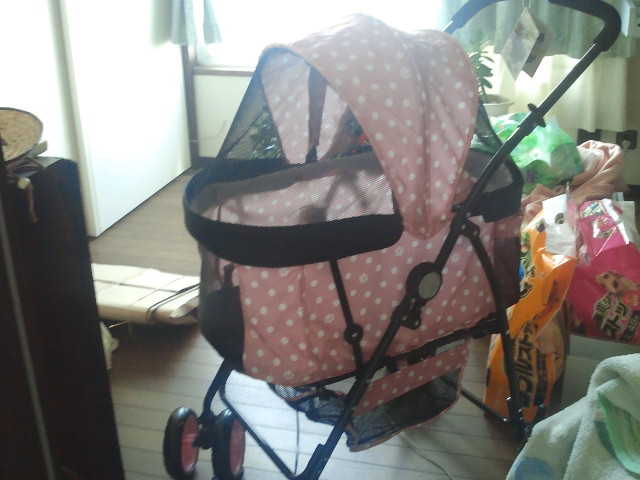 クゥタはパパにあたらしいペットカートを買ってもらいました。安い7480円です。