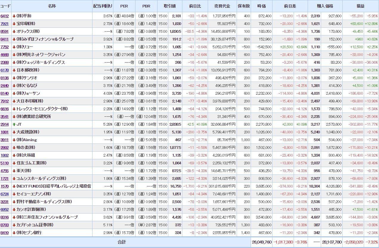 (ナンピン買いが追い付かない。高配当銘柄の下落に追随)