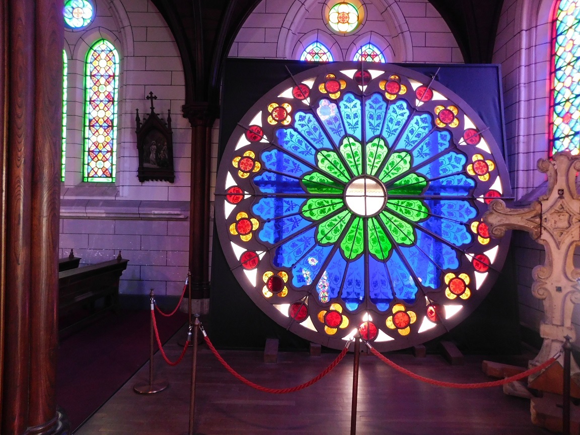 明治村は40年ほど前に行きました、が当時ステンドグラス風のチャペルはなかったような。