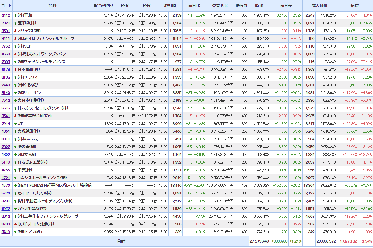 売りにくい感じ。お腹いっぱいの銘柄や、そろそろ利確という銘柄を売った。