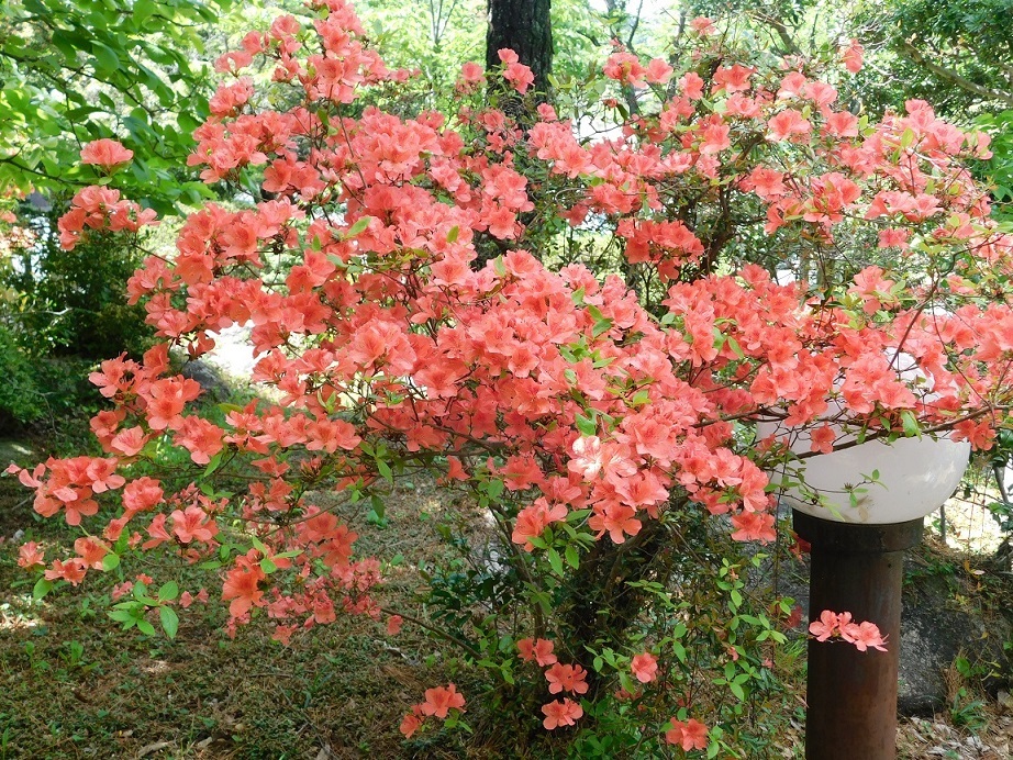 露天風呂では湯舟は最高、ツツジが満開だった。