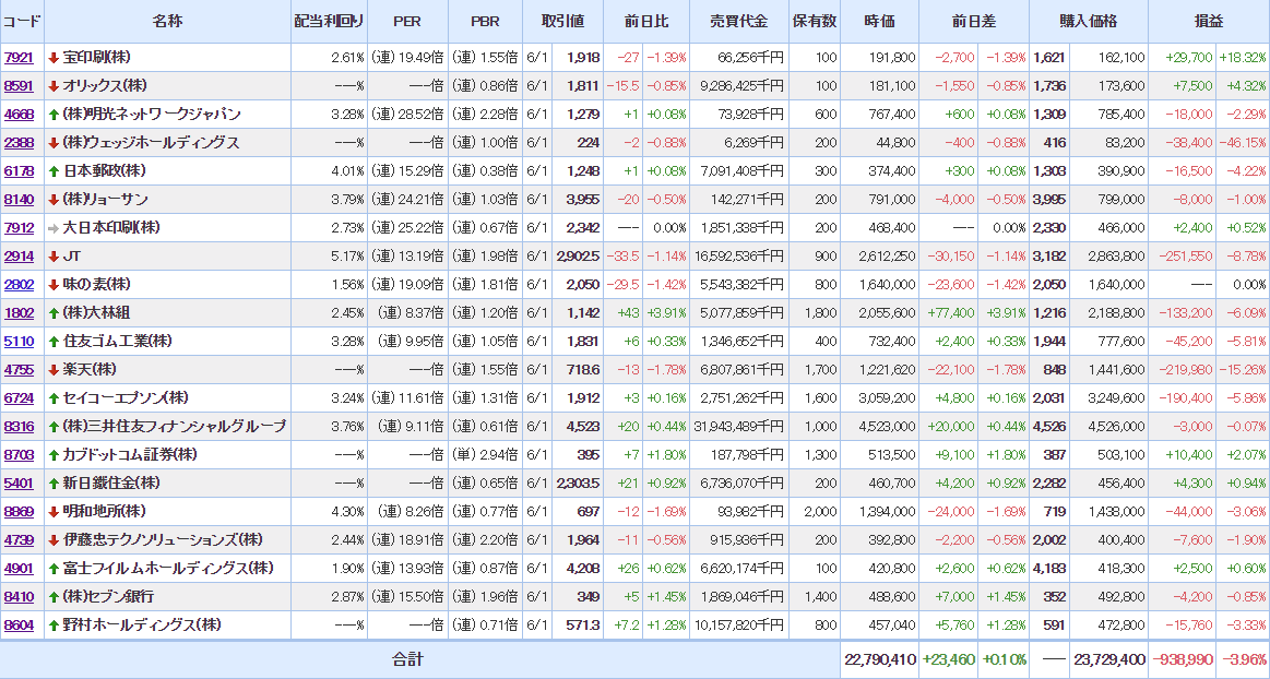 評価損益では大幅に負け。