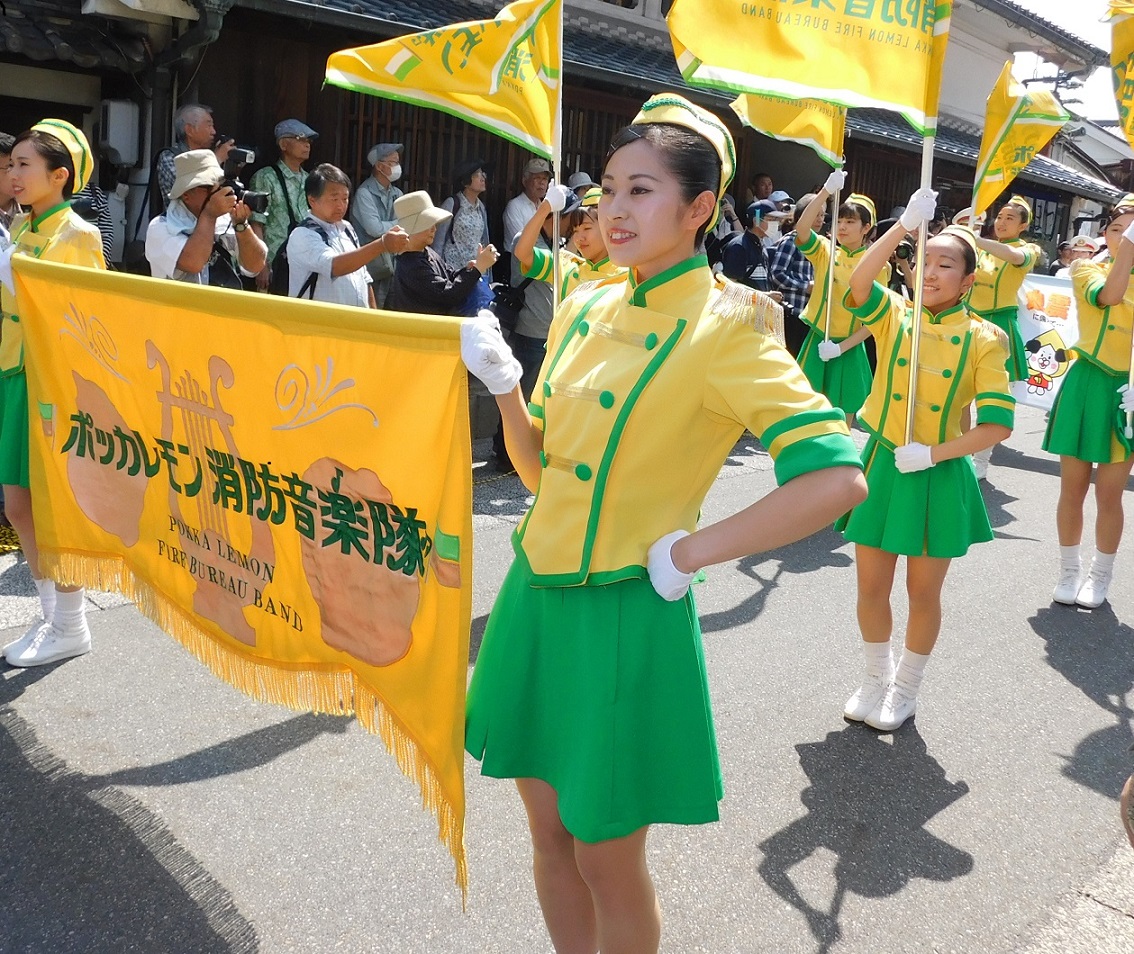 絞り祭りのメインのパレード、暑いのでかわいそうに。