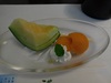 山菜てんぷらがいいですね。メロンの横の赤いフルーツは何でしょうか。