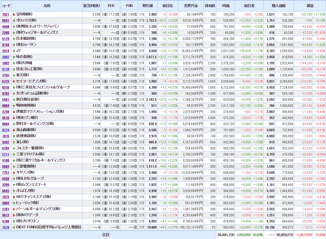 06/25-29:△1,503,620→△1,230,330 +273,290(実現益+209,568)○ 配当167,500含む