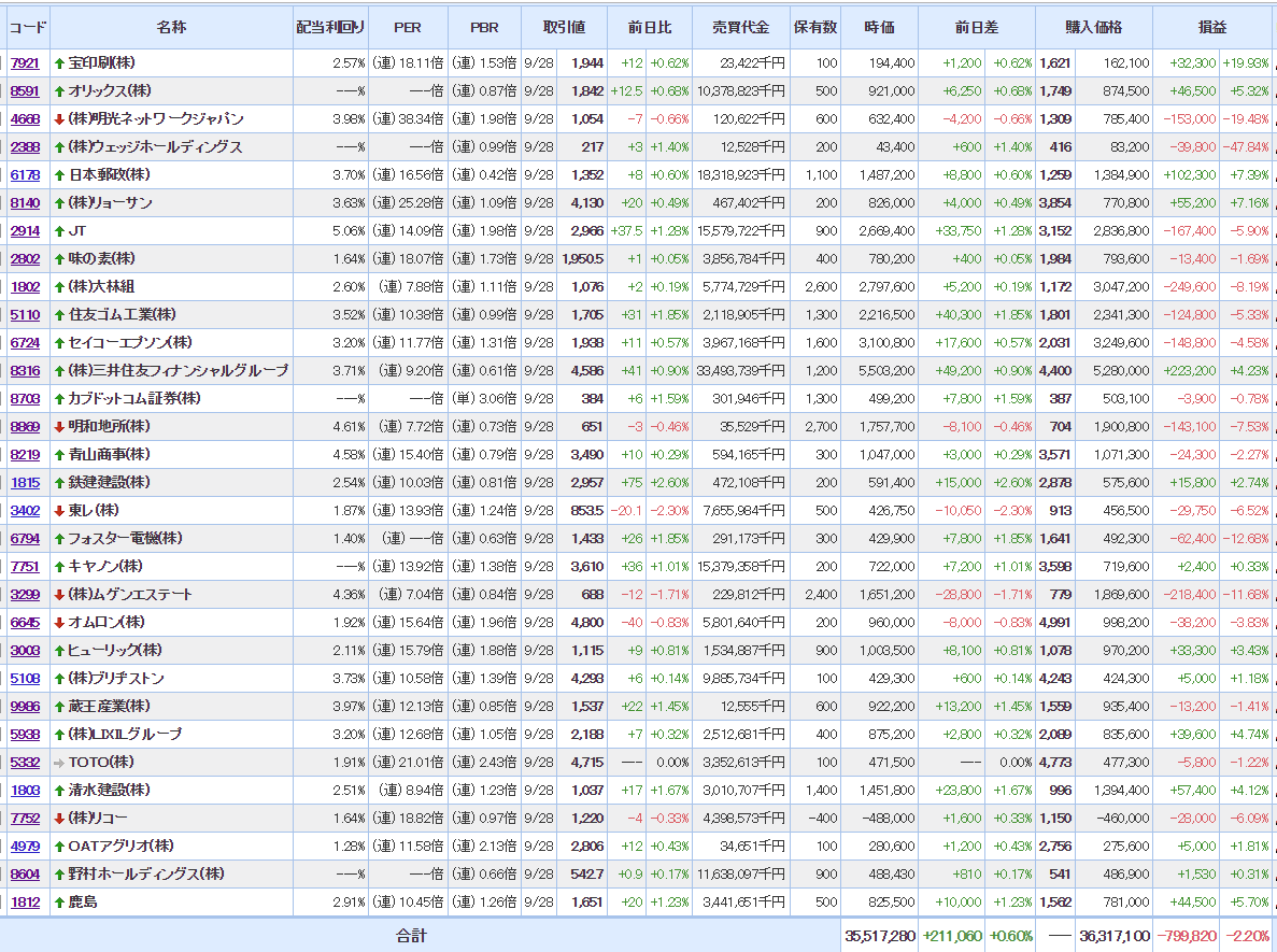 09/24-09/28:△ 531,470→△ 799,820 △268,350(実現益+)×