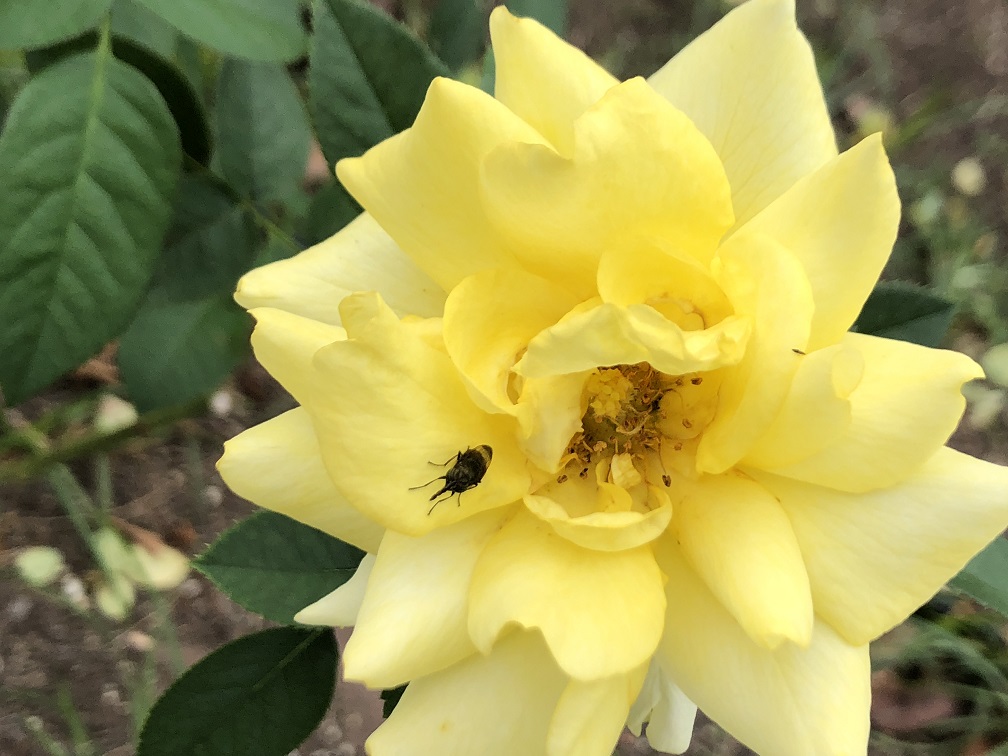 秋のバラ 虻を美化して 蝶となす  弥