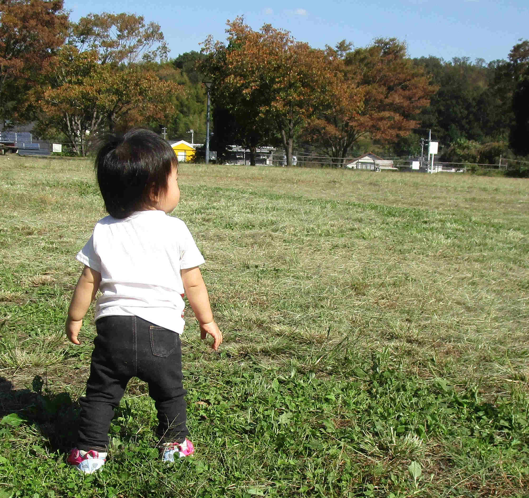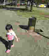1歳4ヶ月で、靴を履かすと喜ぶのだが、道路や店内で歩かすのも危なっかしいので、ついに公園デビューさせた。
