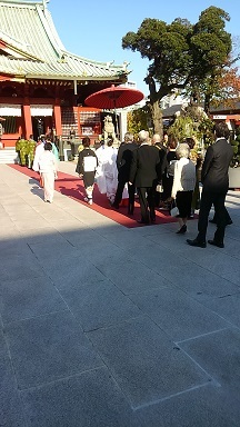 する処に出くわして眺めていると、結婚式の晴れ舞台に出くわしましたので