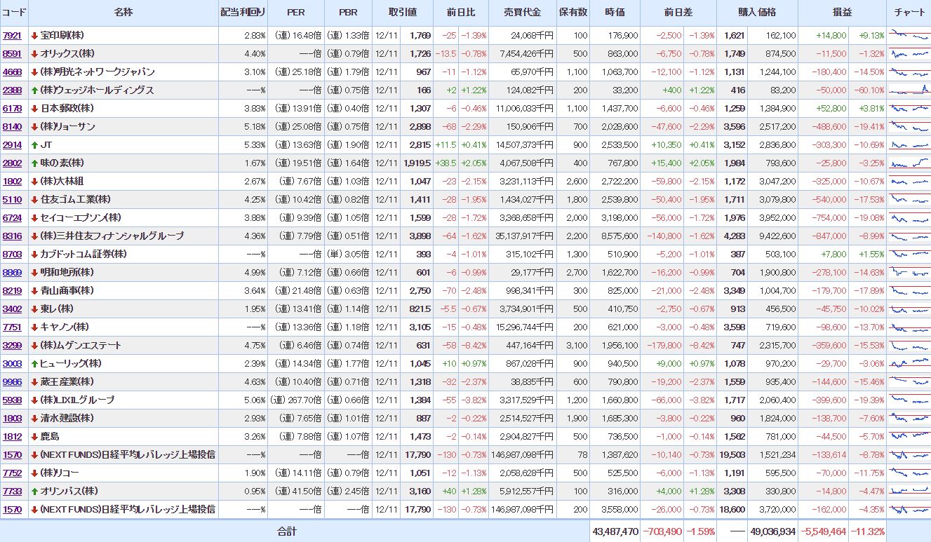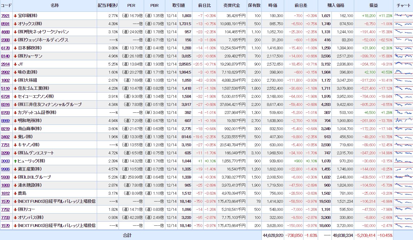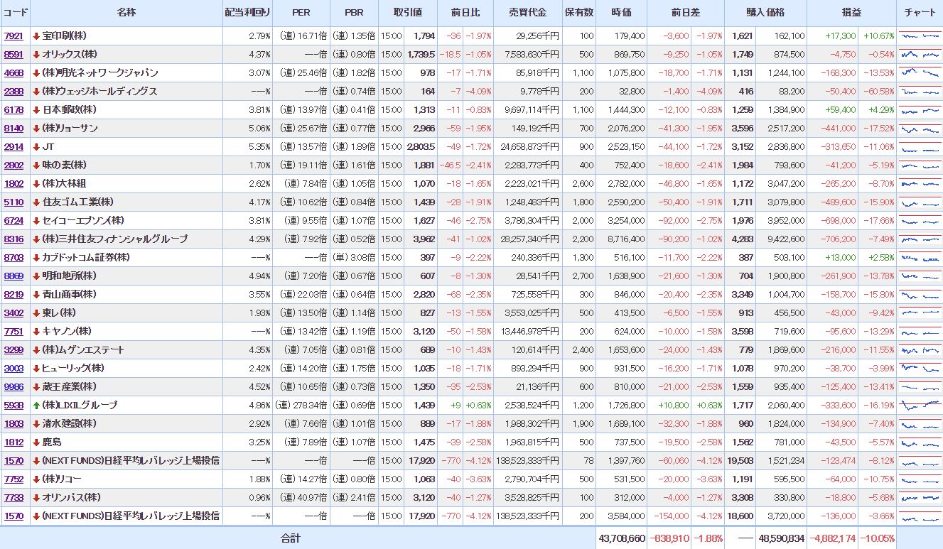 マイPFは、大幅に含み損を増加させ意気消沈状態。