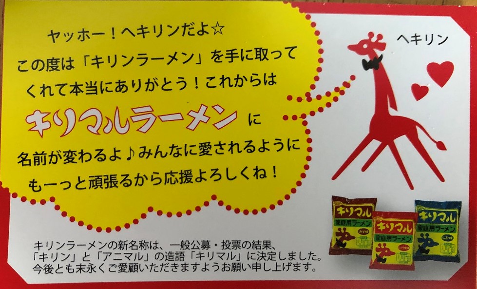 最後のキリンラーメンでした。