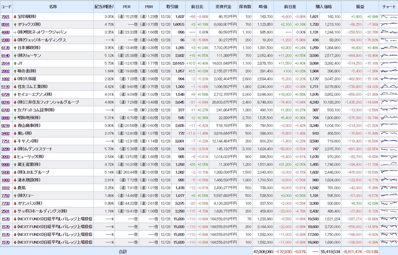 長期保有株の含み損が膨らんでいるのが痛すぎる。