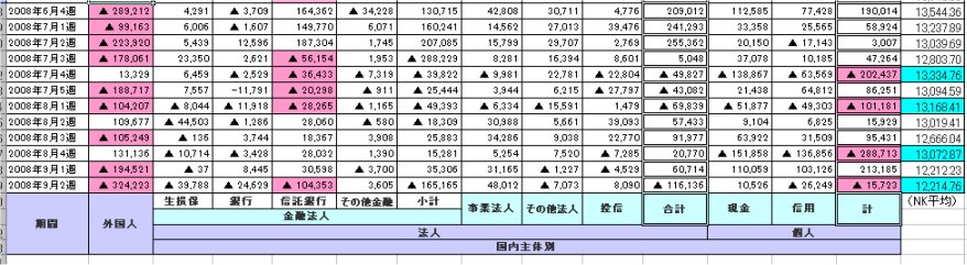 9月第2週は外国人投資家、信託銀行(年金基金?)、個人等