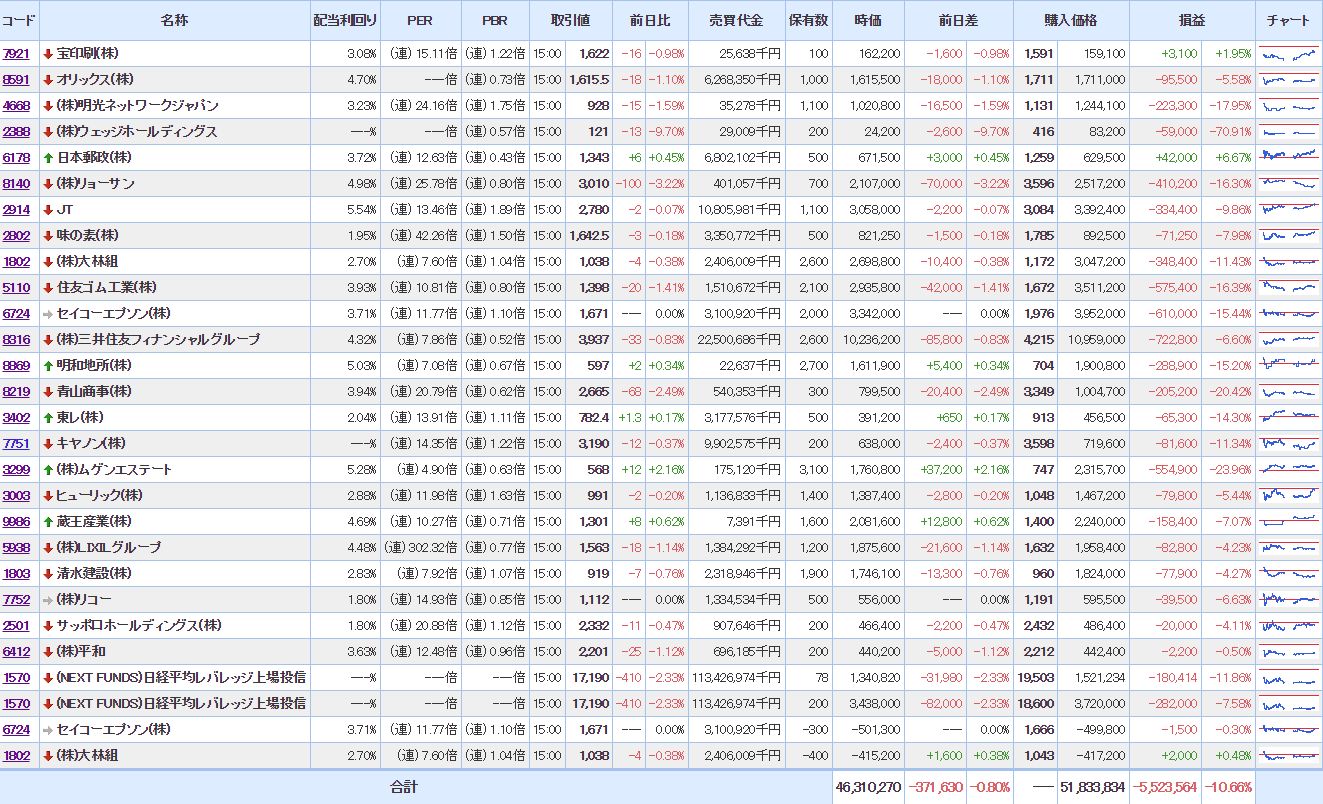 マイPFは、大幅に含み損を増加させ、意気消沈。