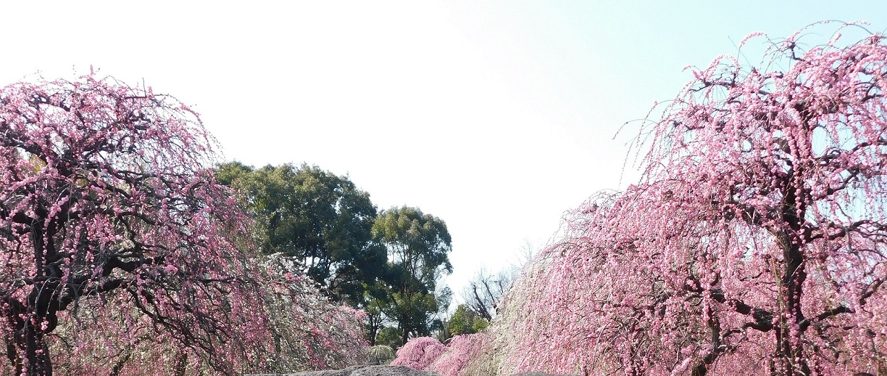 しだれ梅とお抹茶、竹の前で飲むお茶はいい。