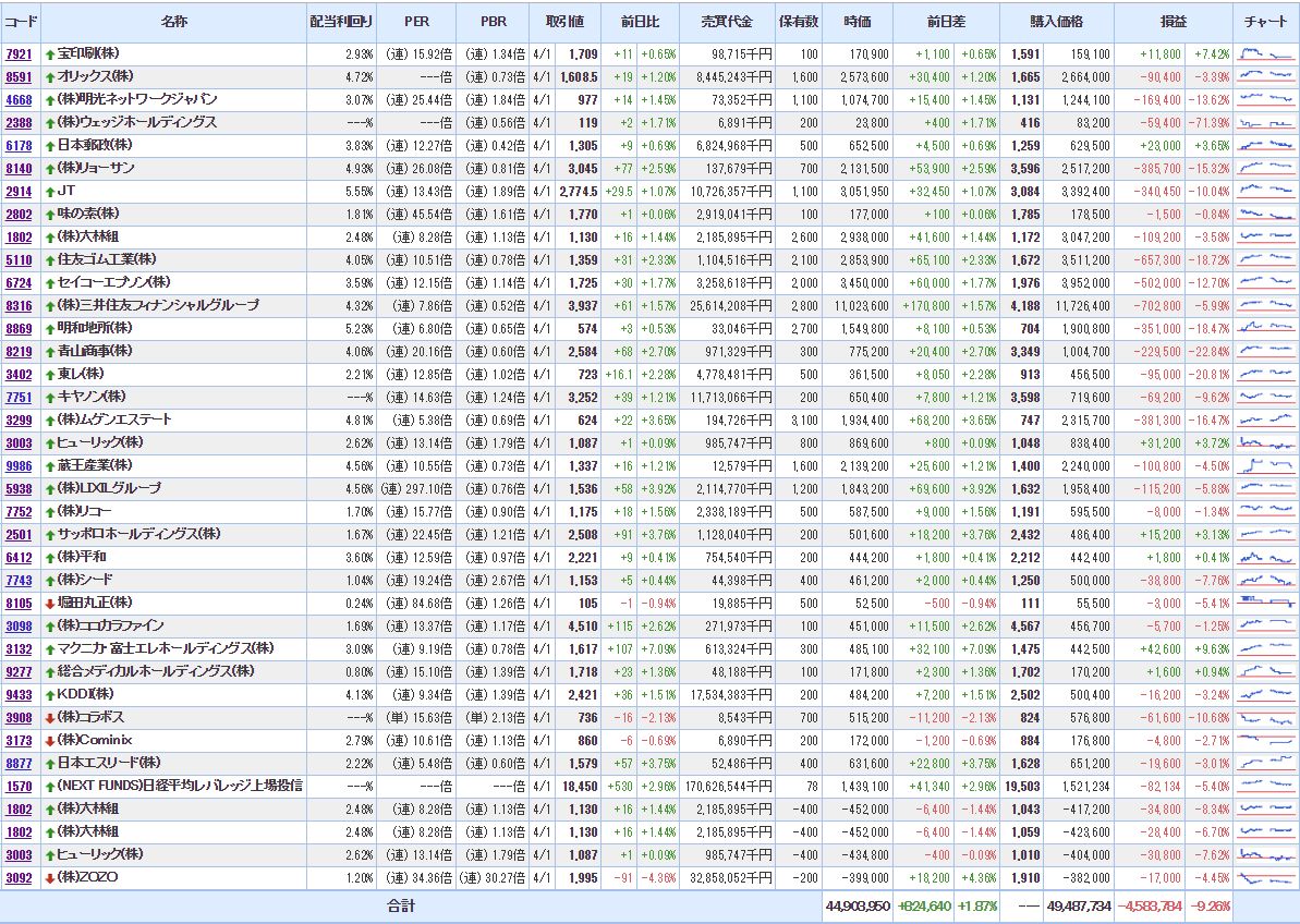 マイPFは、依然として多額の含み損を抱え動きにくい。