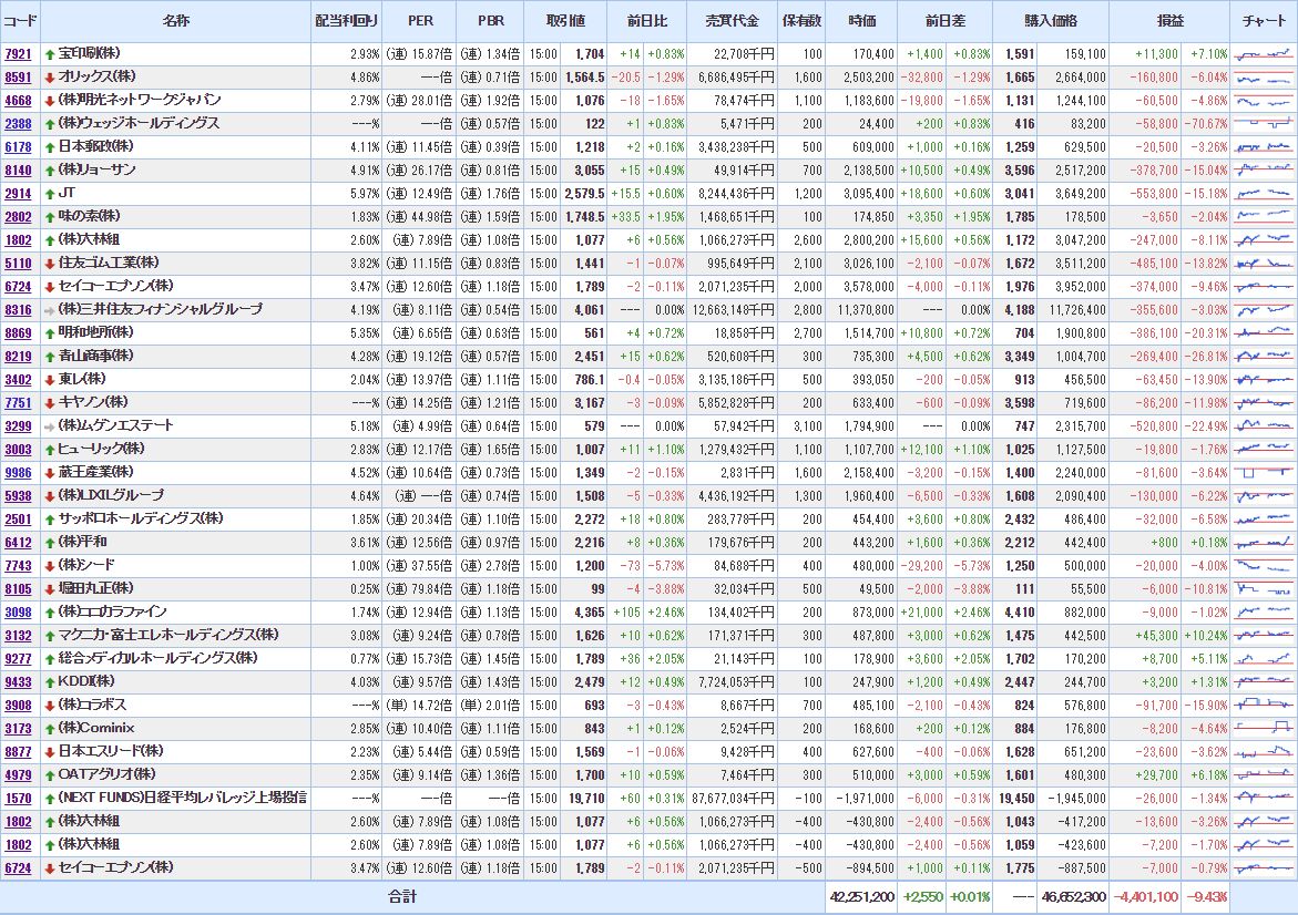 気持は、先週の誤発注を引きずっている。それ以外は問題なし。