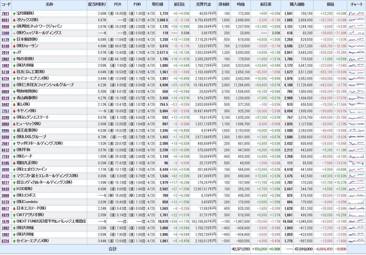 マイPFは、依然として多額の含み損を抱え動きにくい。