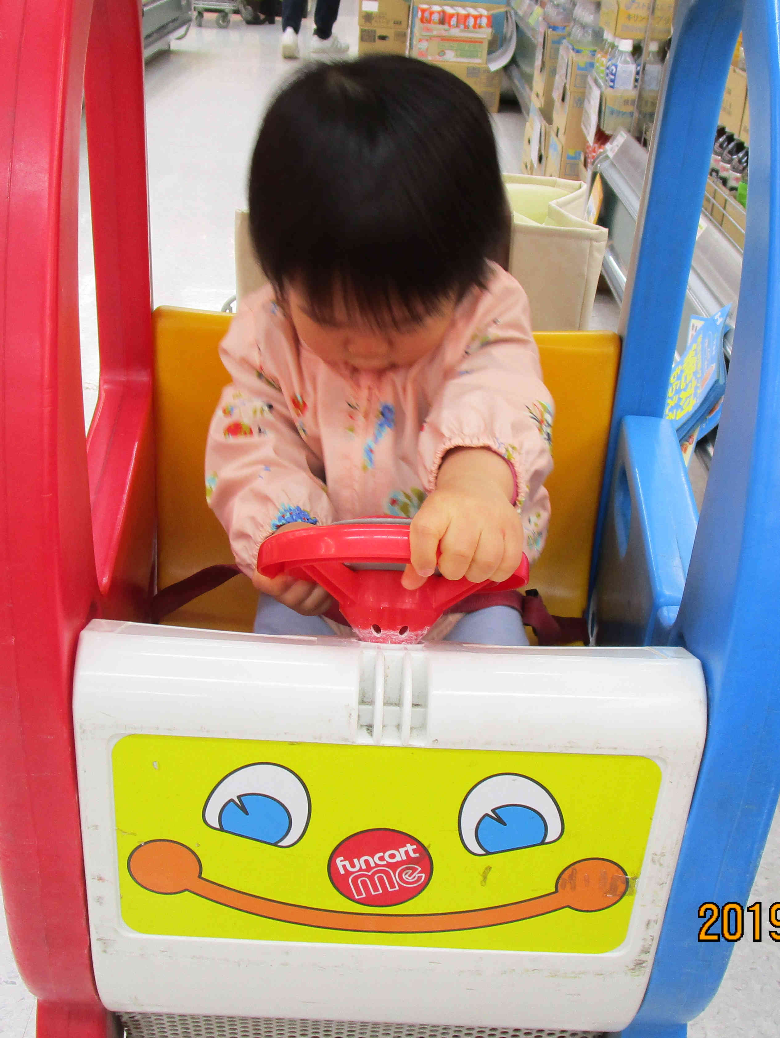 このこは、スーパーに買い物に行っても、お気に入りのカートでしか店内を回らしてくれない。眠そうだったから寝ても大丈夫なベビー用にしようとしても聞かない。しばらくすると、やっぱり枠にがんがん頭をぶつけながら居眠りしてる。