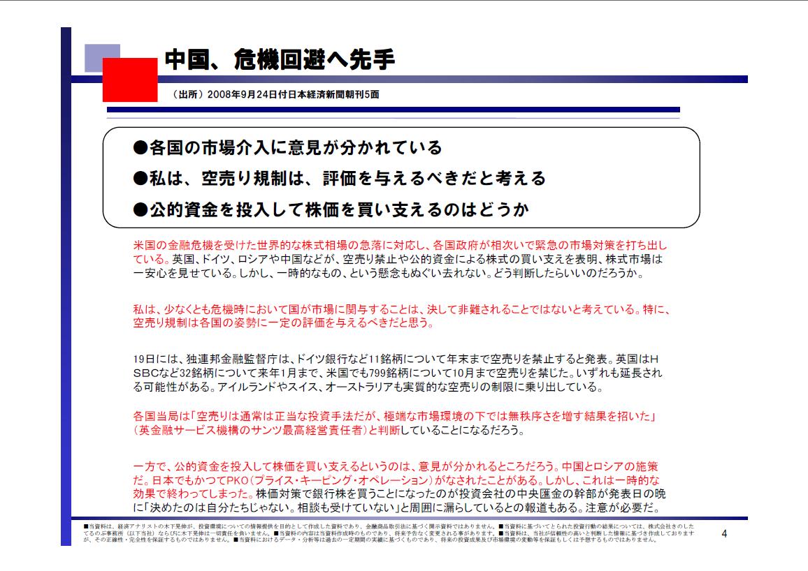 特に、空売り規制は各国の姿勢に一定の評価を与えるべきだと思う。