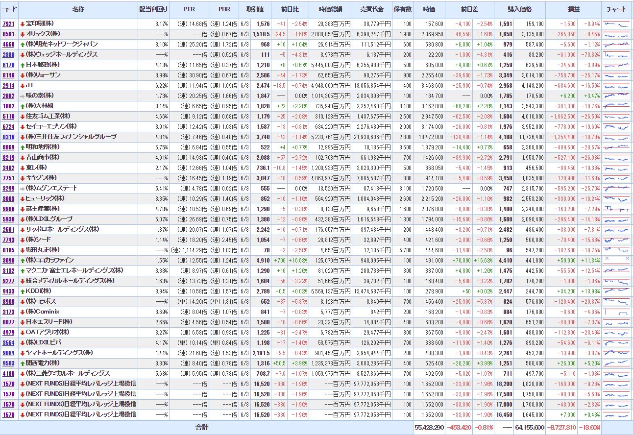 ・含み損銘柄数:29(前日比△03)
