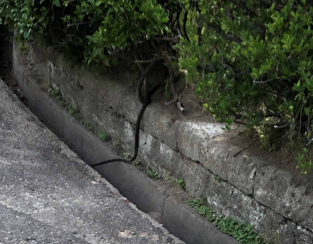 鶴舞公園の音楽堂の前で大きな蛇が。