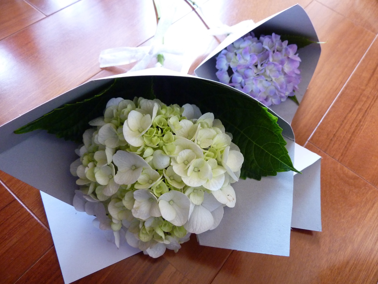 水引で結んだあじさいを一年間逆さまに吊るすと厄除けになるというもの。