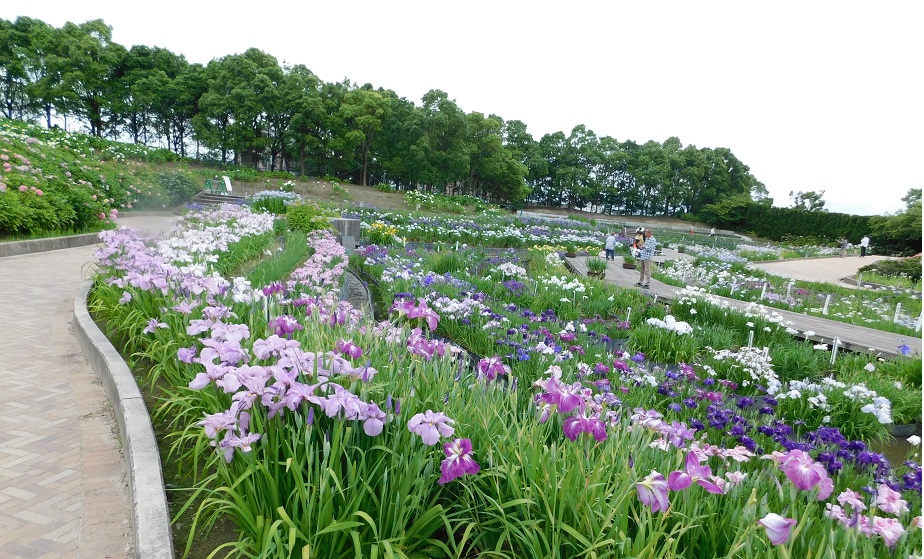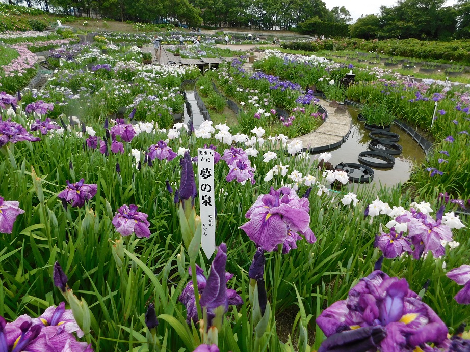 秋田にも県南方面 さくらんぼの頃 花菖蒲園が ありまして 遊歩道や滝などありました。小高い山も作って あずまやがあったり 休めます。川など作ったりしたところで 子供が水に入って遊んでました。