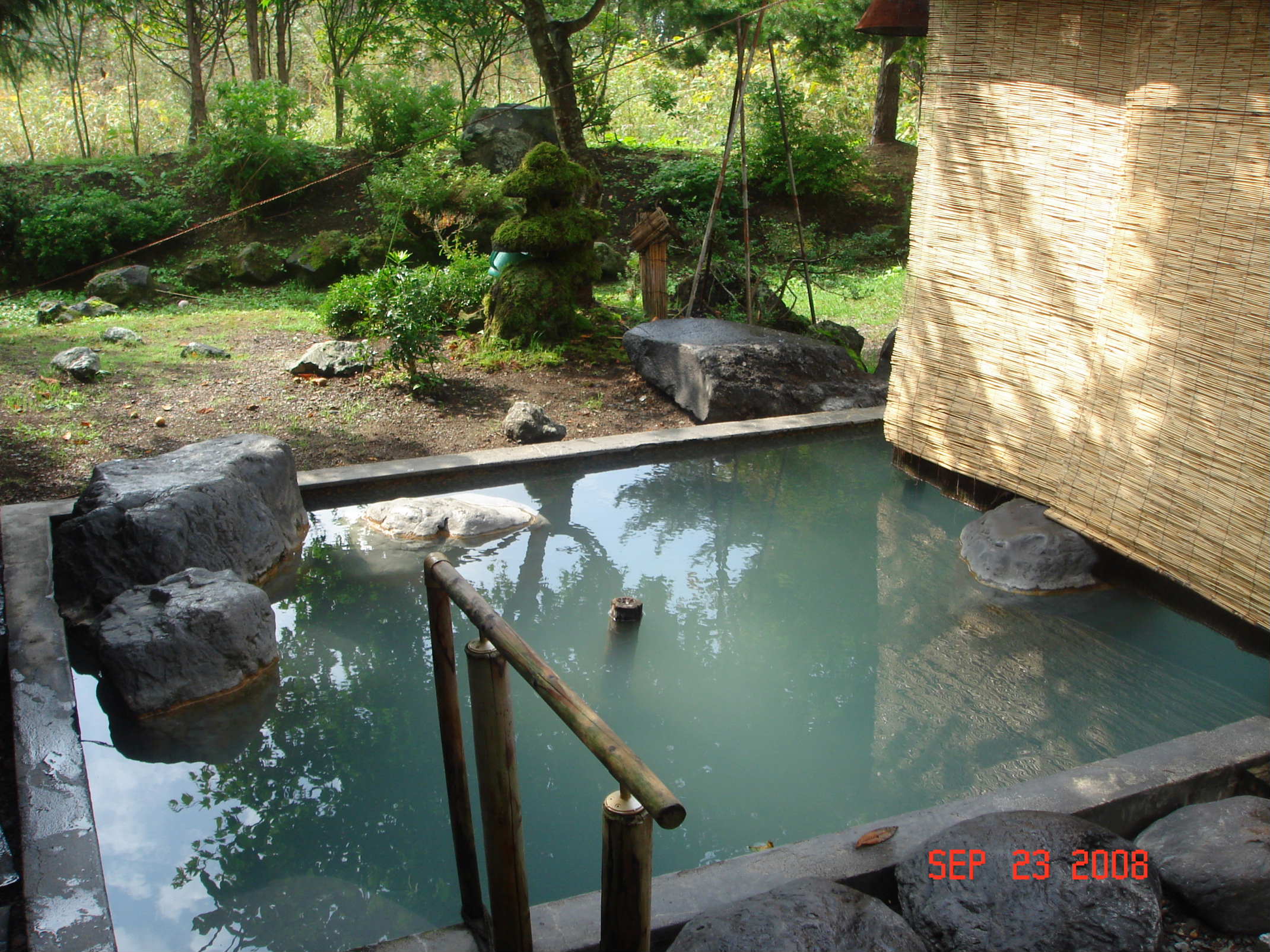 朝は雨 虎杖浜温泉(湯元ほくよう)500円(写真上)がまず最初の目的地 広々としてなかなかいい露天風呂ですが、奥の湯はかなりぬるかったです。手前がいいですね。内湯も大きい湯船が3種。ゆったりできます。