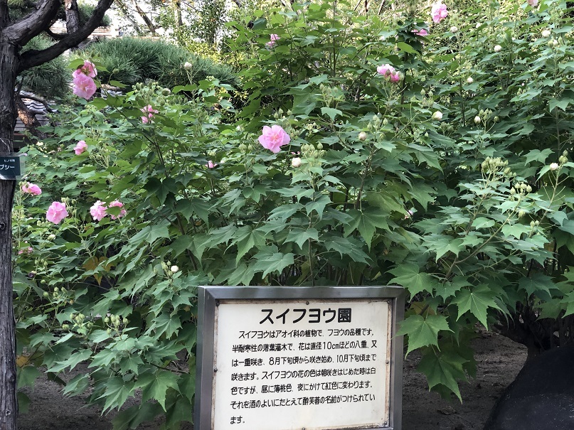 看板の説明にあるように、咲き始めは白色なのに、次第に紅色に変わっていくんですね。
