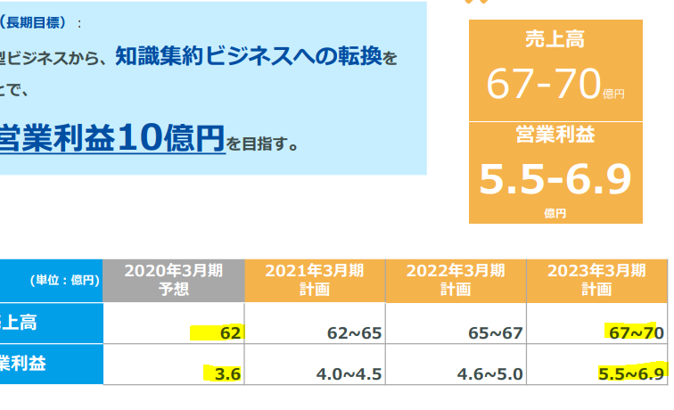 だって3年後の目標が経常10倍とか20倍とかぶち上げて