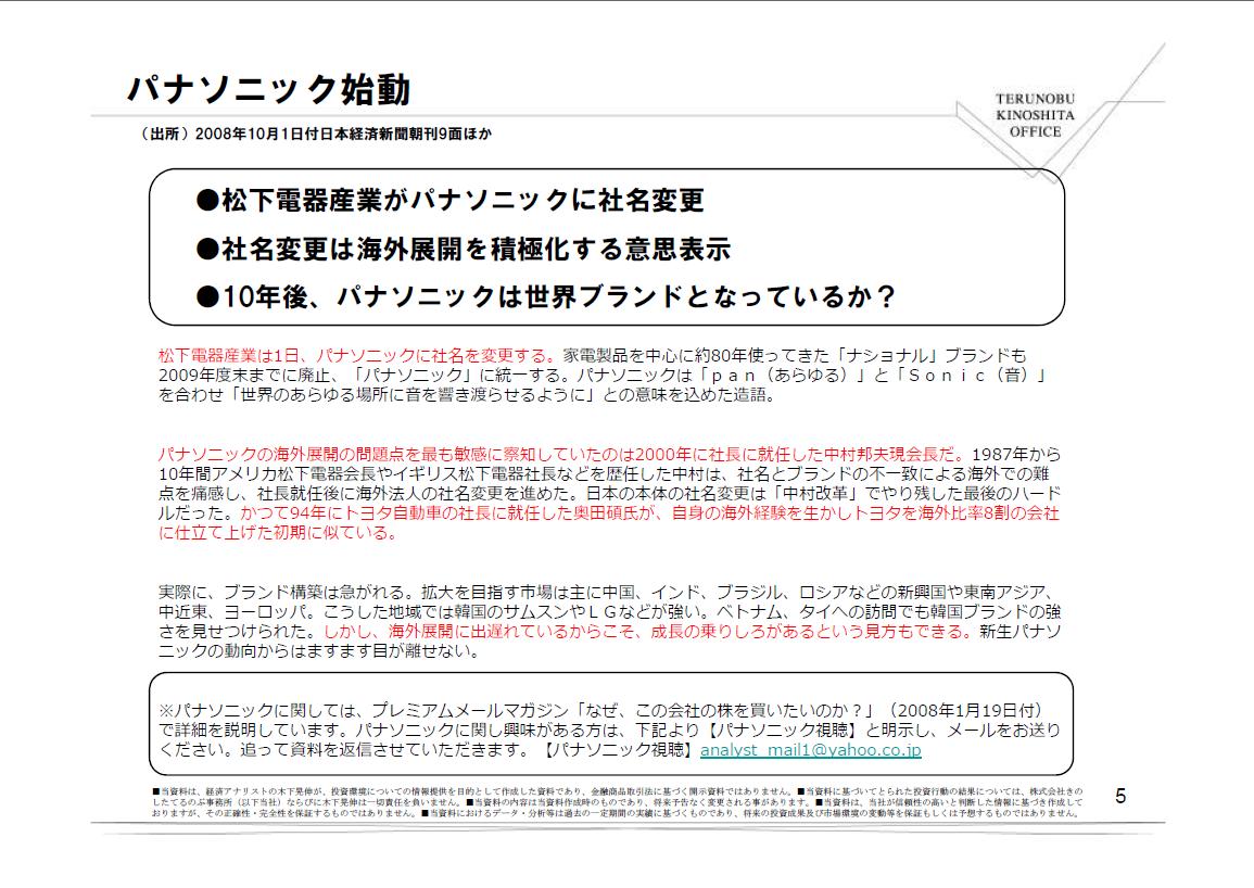 家電製品を中心に約80年使ってきた「ナショナル」ブランドも2009年度末までに廃止、