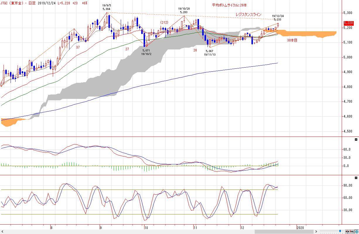 ボトムサイクルは本日で30本目を形成しており、平均ボトムサイクルに到達している。