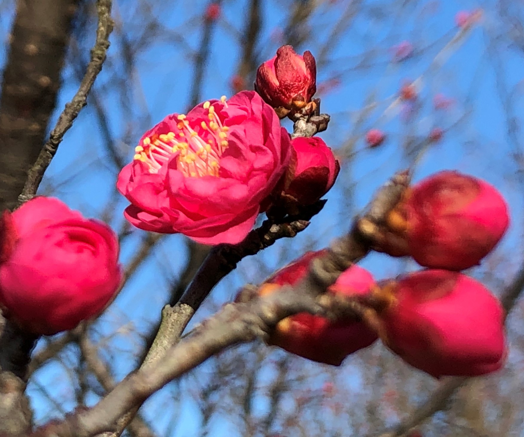 紅梅はいつもなら一番寒い時期を少し超えたころに開花してたと思います。